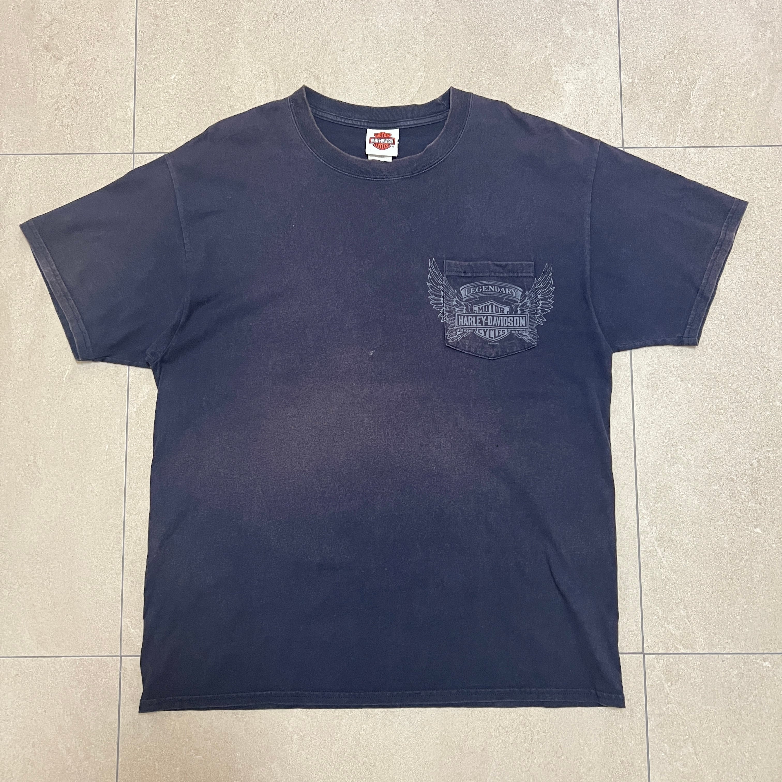 HARLEY-DAVIDSON ハーレーダビッドソン 背面ビックプリント ポケットTシャツ ネイビー サイズL