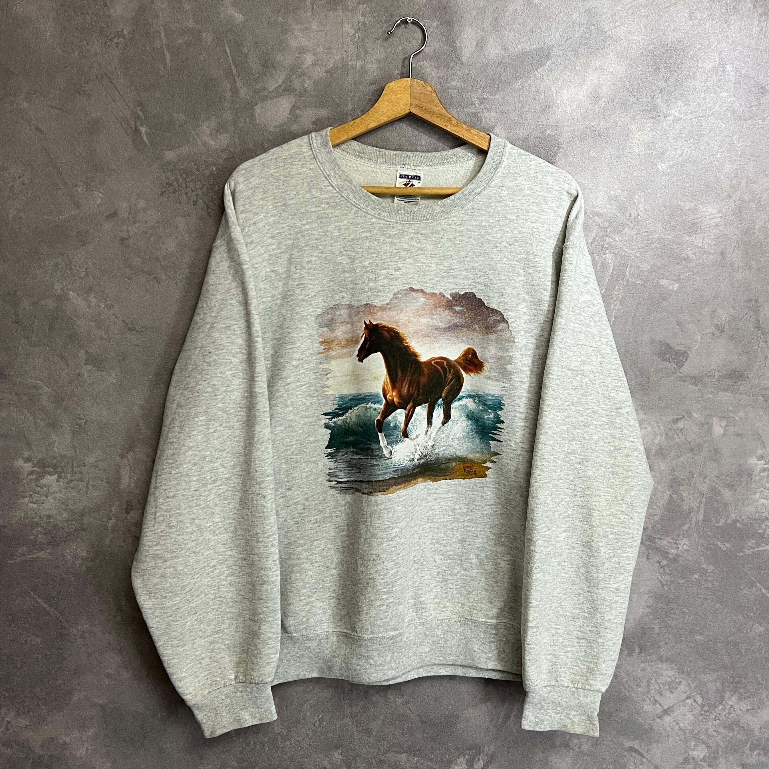 【商品名】90s JERZEES 馬 プリント スウェット 杢グレー サイズM