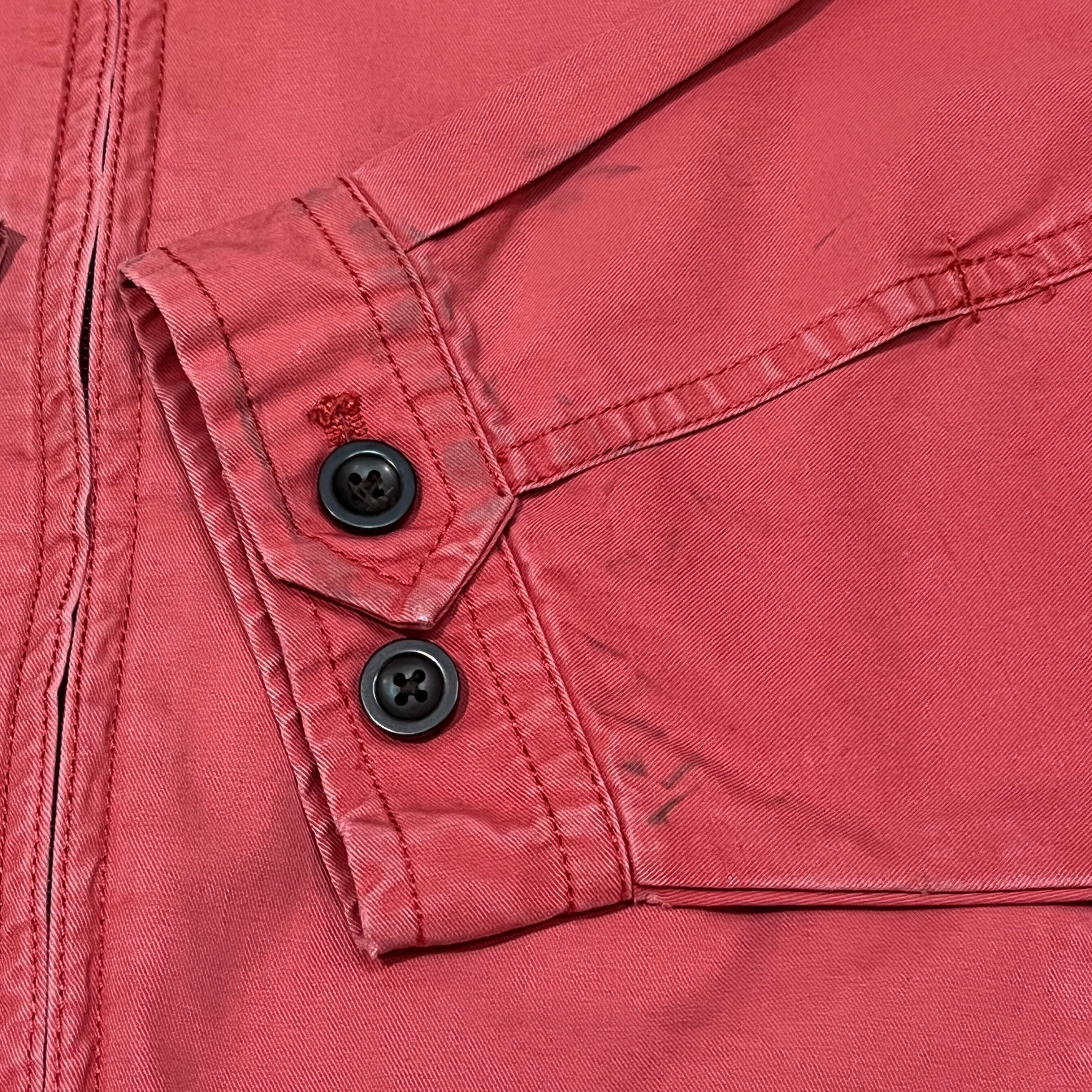 フェード感のあるレッドカラーが大人のカジュアルに映え、胸元の刺繍ロゴがさりげないアクセントは羽織るだけで大人の雰囲気が出る一枚です。
