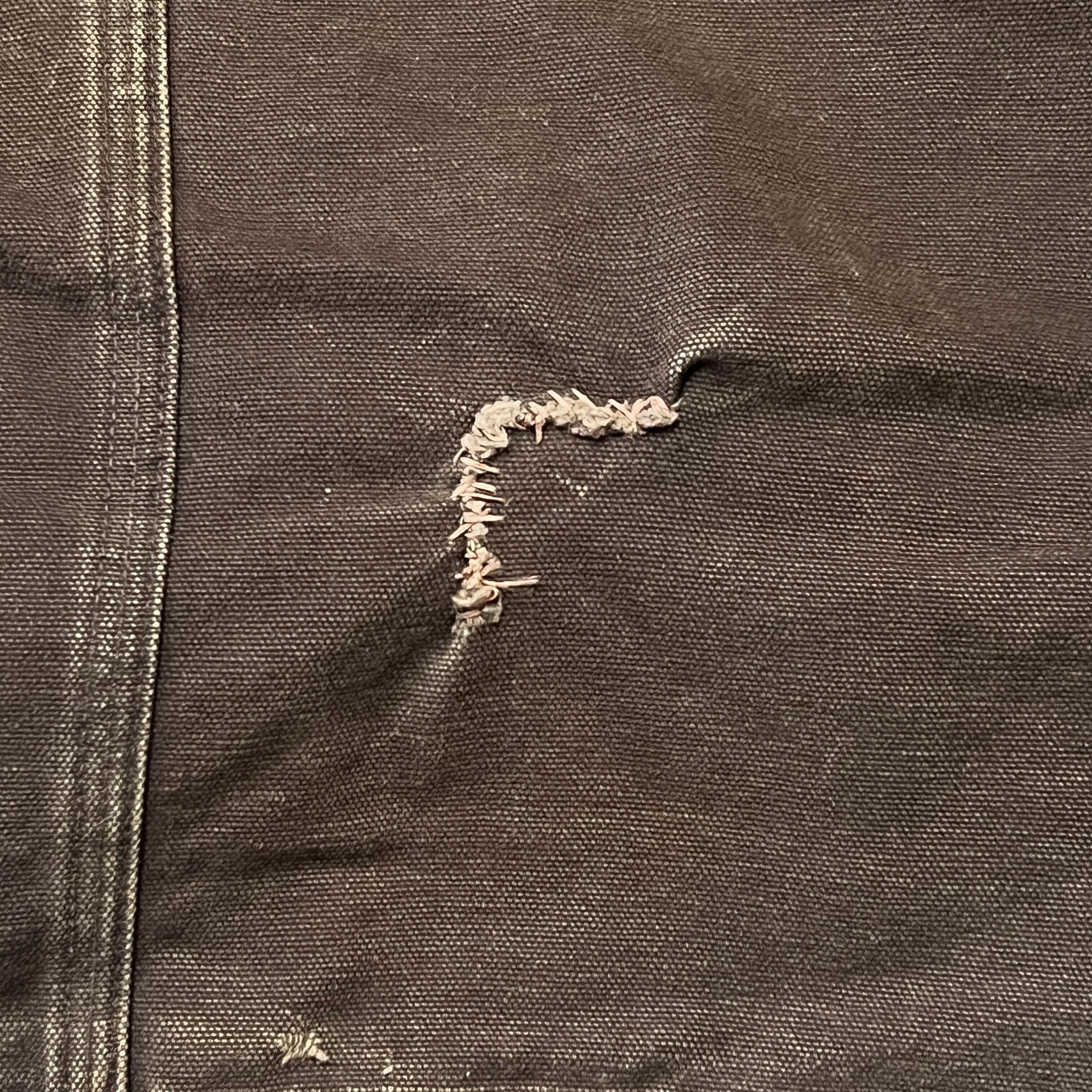 胸のジッパー外れてます。腕のシミと背中にリペアあり(詳しくは画像11〜13枚目を参照してください)。古着慣れされてない方でも問題なく着用できます。