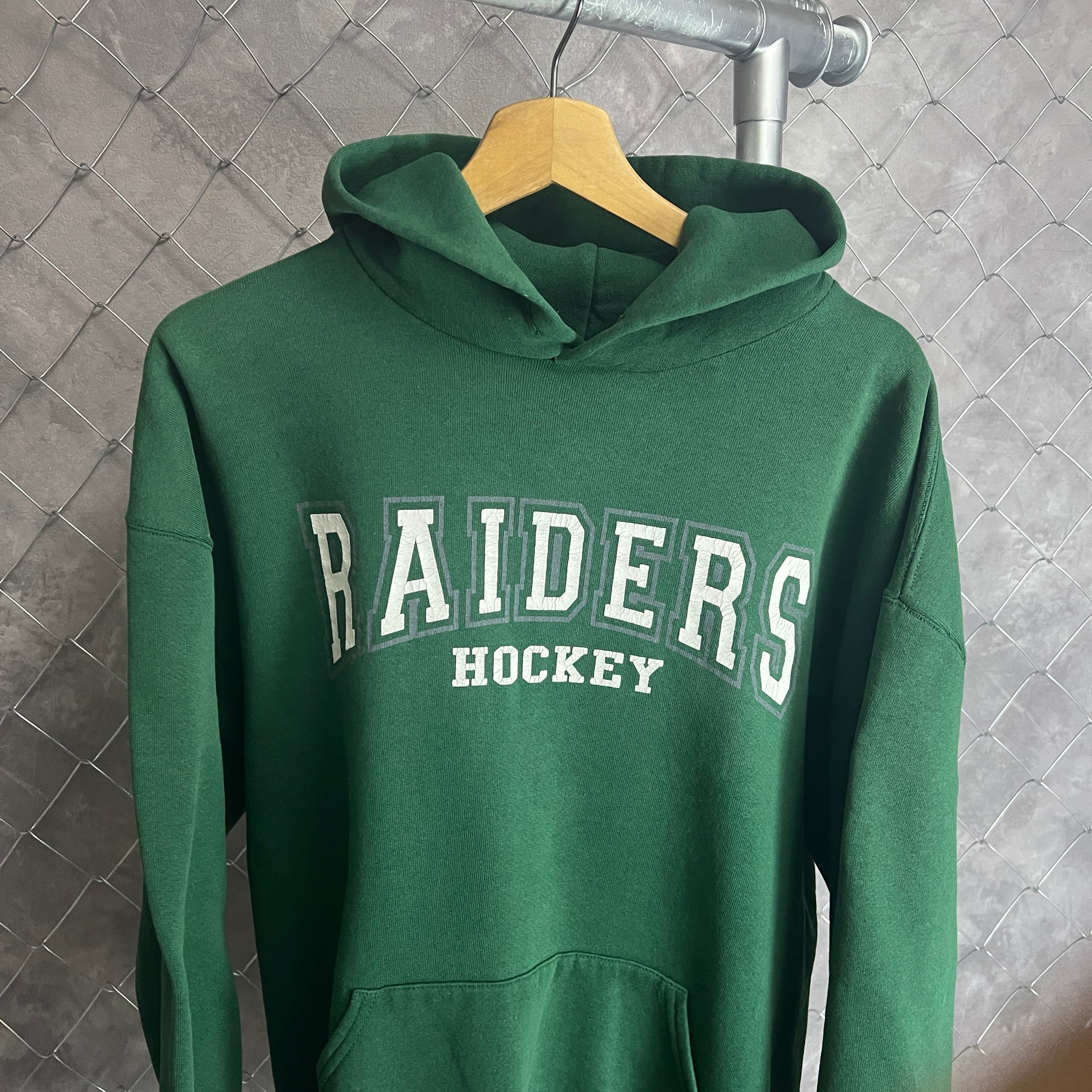 90s〜00s RUSSELL ATHLETIC RAIDERS HOCKEY パーカー グリーン サイズL 紐なし